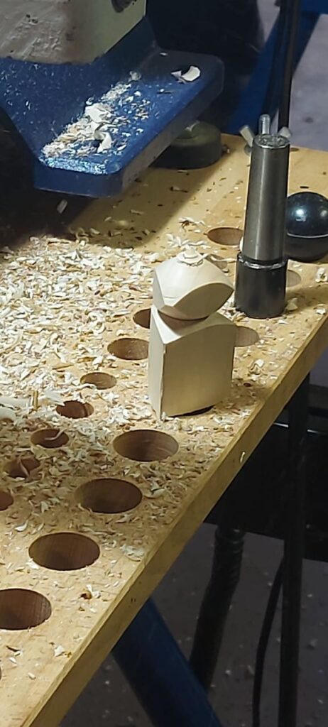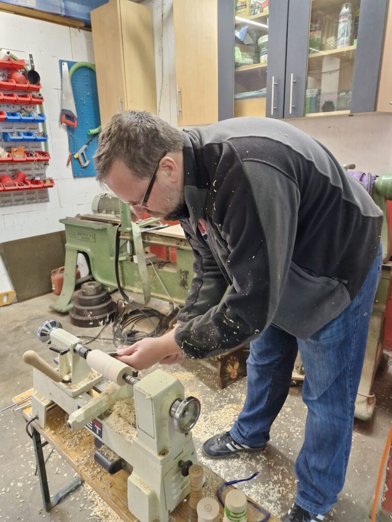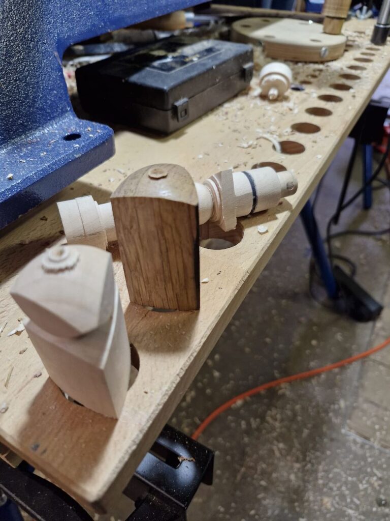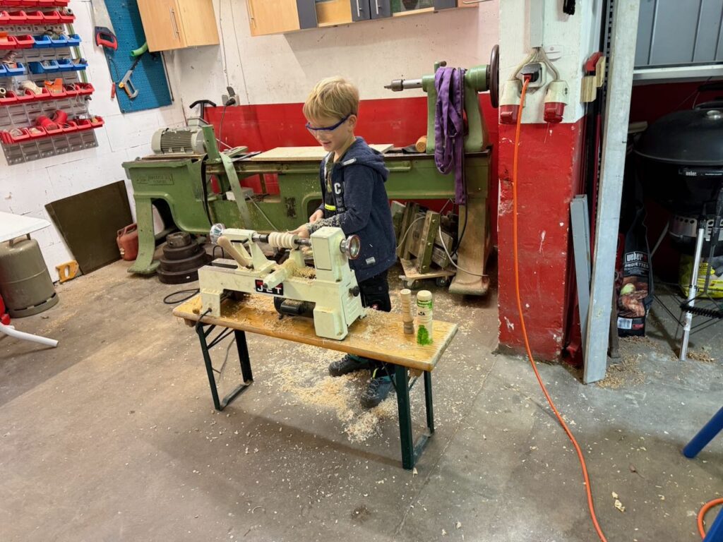 Ja, und etwas verspätet, noch ein Bericht zum letzten Stammtisch mit Thema Spielfiguren. Hierfür wollte ich eigentlich ein paar Spielfiguren fertigstellen, allerdings hab ich das nicht ganz fertig Geschafft und somit konnte ich auch nicht so viel Zeigen wie ich eigentlich wollte. Schön fand ich an dem Tag, das mein Kleinster mitmachen wollte und an seiner Drechselbank, Leihgabe vom lieben Klaus-Peter S. aus F., zwischen den Spitzen gedrechselt hat. Das Rundschruppen liegt ihm noch nicht so sehr, dass hab ich dann an der Bank für ihn erledigt… Die Besucher fanden es amüsant.