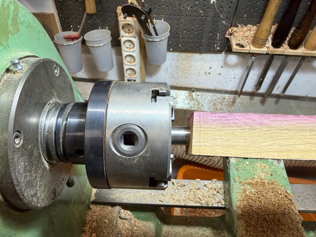 Im Futter mit 18mm ausgebohrt, danach direkt die Auswurfstange ins Futter gespannt und darauf fertig gemacht. Schnell geölt und kurz danach mit Sekundenkleber eingeklebt… Freu mich schon, wenn das Öl trocken ist.