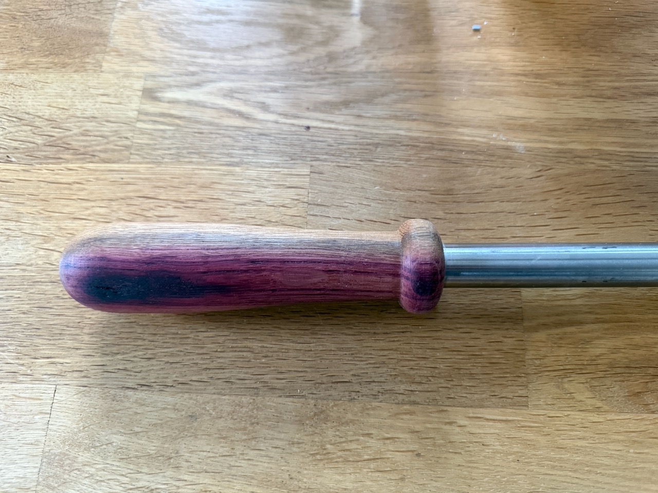 Als Griff nutzte ich meine geliebte Eiche Fassdauben vom Rotweinfass. Ich finde das Farbspiel einfach toll.