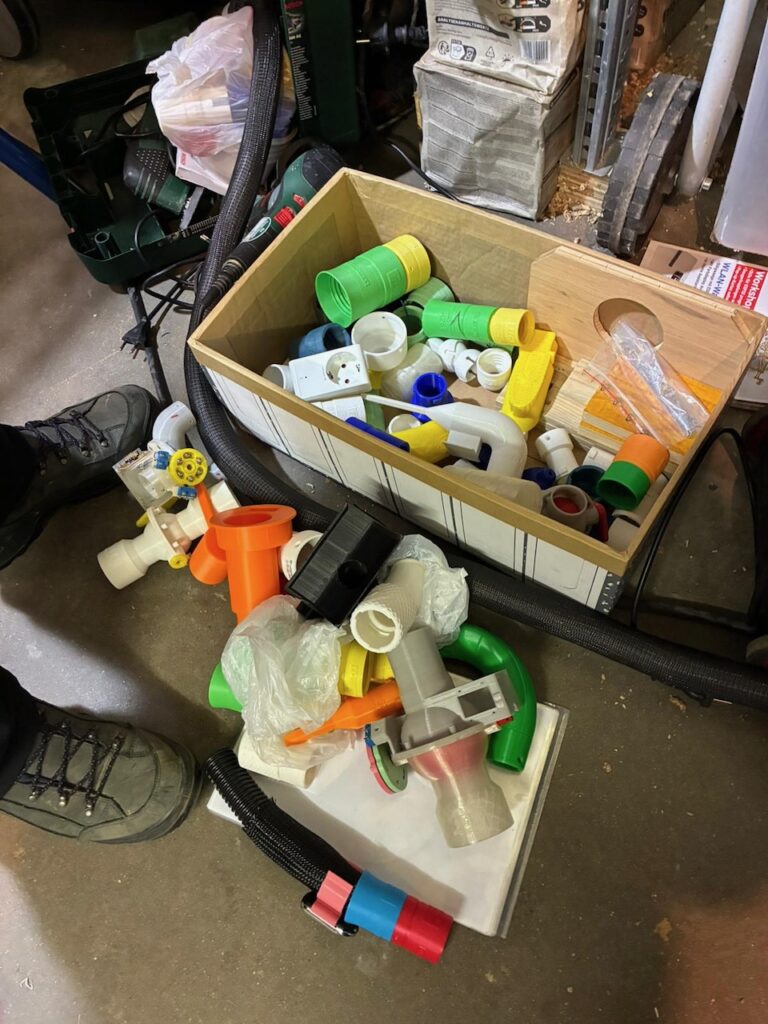 Das Thema war die Spiralschale aus der Ankündigung. Zusätzlich hatten wir als Gast den Ludo da, der sich eher mit 3D Druckern auseinander setzt und dort das Projekt osVACneo vorantreibt. Er hatte von unseren Stammtischtreffen gehört und wollte mal sein Absaugsystem vorstellen und hat an dem Tag ein Kiste mit Adaptern mitgebracht und ein paar Maschinen und uns gezeigt was das System für Handmaschinen so bietet. Ich glaub wir waren uns am Ende einig, dass es an der Drechselbank nicht so viel Anwendung findet?