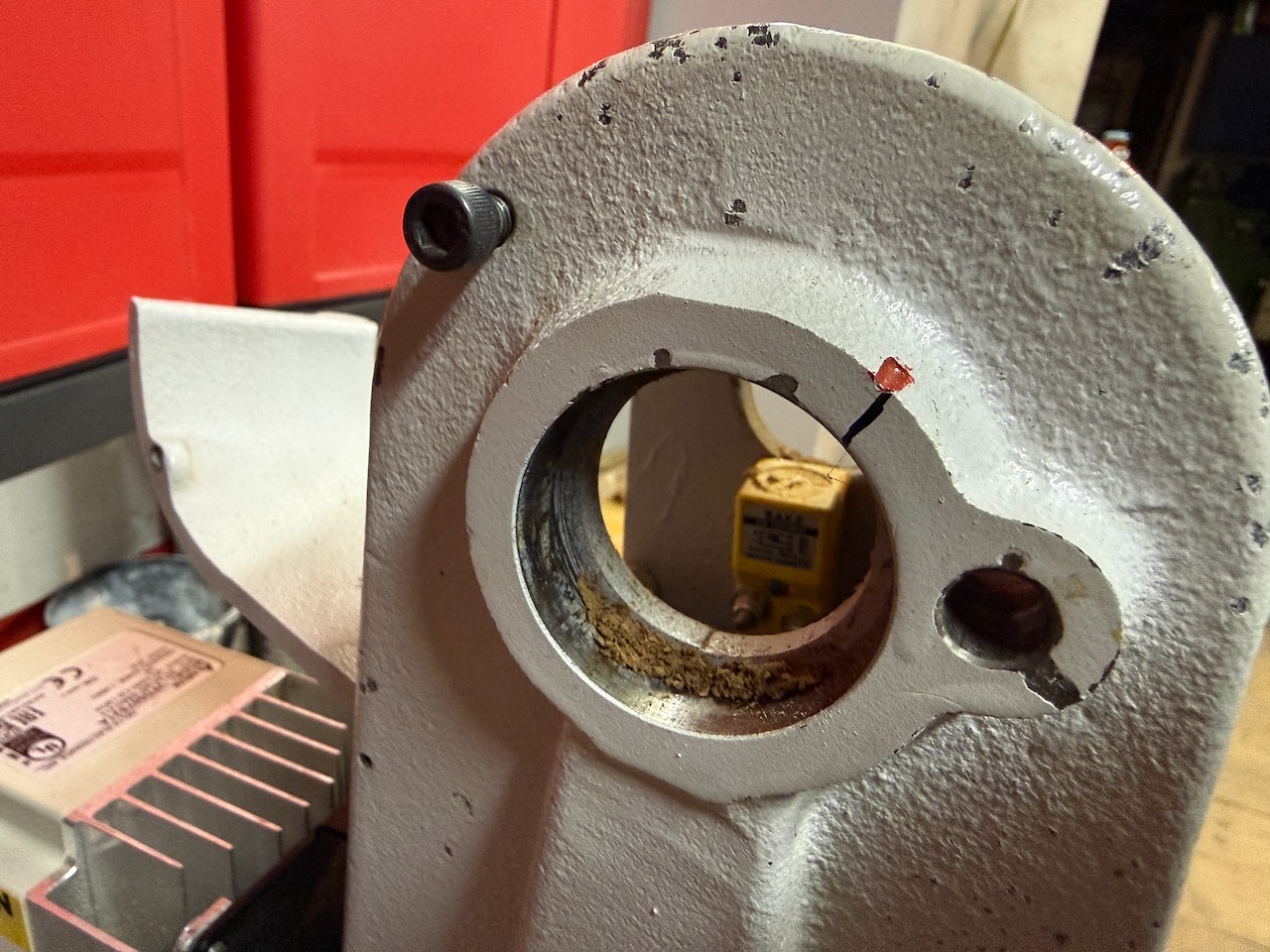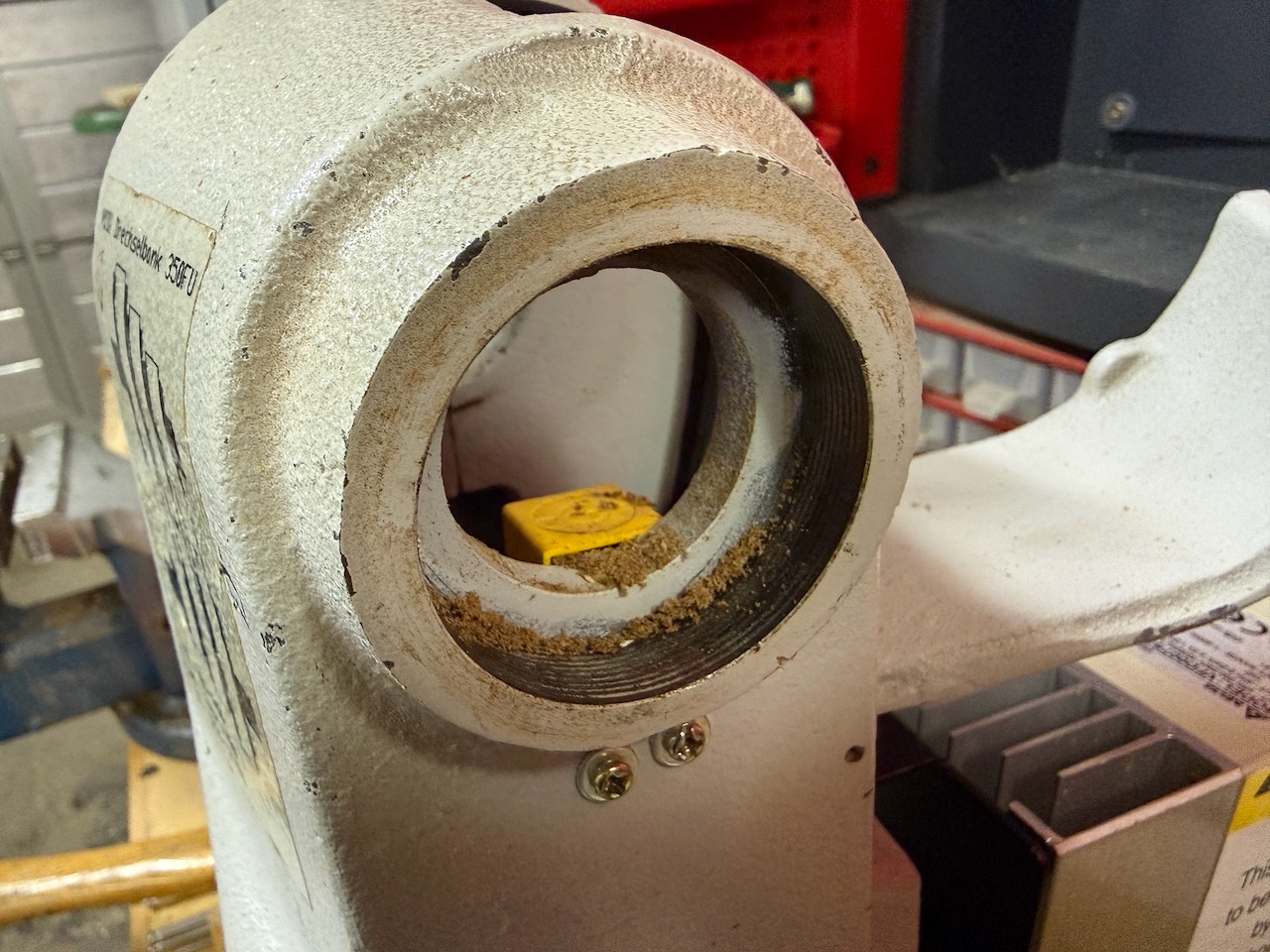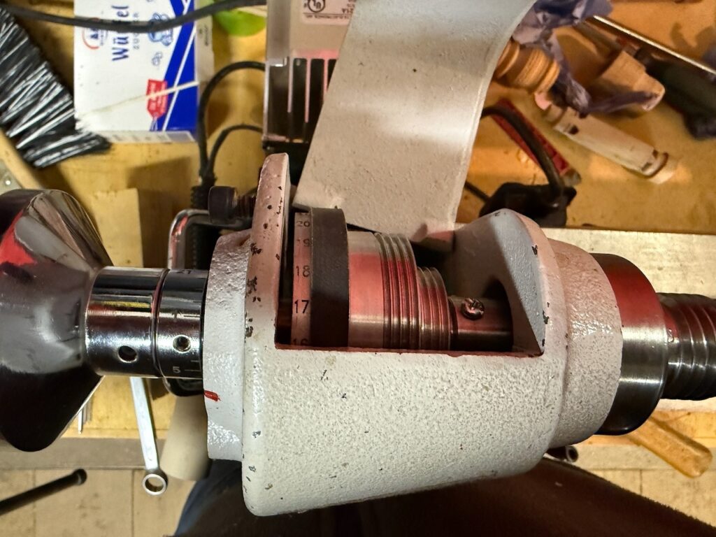 Da wurde vor kurzem eine Tischdrechselbank bei mir abgegeben. Diagnose, komische Geräusche bei laufender Maschine… Mal nur den Motor ohne Riemen laufen lassen, danach mit Keilriemen und da konnte man schnell erkennen bzw vermuten, dass die Lager nach 10 Jahren einfach hin sind. Also hab ich mich mal ans ausbauen gemacht.